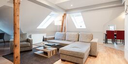 Viel Platz (100 qm) und jede Menge Gemütlichkeit erwarten Sie im Dachstudio der Villa Dora. Die Ferienwohnung 14 bietet Platz für bis zu 4 Personen. Moderne Möbel und Ausstattungen, gepaart mit Dachbalken und Schrägen, ergeben hier eine besonders wohnliche Atmosphäre. Der schöne Wohnbereich ist mit bequemer Sitzgruppe und Flat-TV ausgestattet. Hier findet man auch eine kleine Rückzugsecke unter der Dachschräge. Auf zwei Sesseln genießt man von hier aus, aus den kleinen Dachfenstern, den tollen Blick auf die Ostsee. Sicher wird dies schnell zu Ihrem Lieblingsplatz. Die zum Wohnbereich angrenzende, offen gehaltene Küche ist komplett ausgestattet und bietet auch dem Esstisch Platz. Zwei Schlafzimmer mit komfortablen Boxspringbetten (1x Doppelbett (1,60m x 2,00m) / 1x getrennte Betten (0,80m x 1,90m)) ergänzen die Wohnung ebenso wie das große Bad mit Doppelwaschbecken, WC, Dusche und Eck-Badewanne. Für Ihren Komfort sind die Betten bei der Anreise bezogen und Handtücher liegen bereit. Für kleine Gäste kann ein Kinderreisebett und ein Kinderhochstuhl bestellt werden. Für Ihren PKW steht Ihnen ein Parkplatz mit Poller vor dem Haus zur Verfügung.